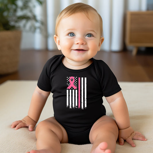 Breast Cancer Flag Baby Creeper - Breast Cancer Awareness -Pink Ribbon - American Flag -Pink Ribbon Bodysuit - Creeper Bodysuit