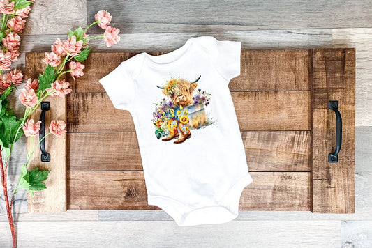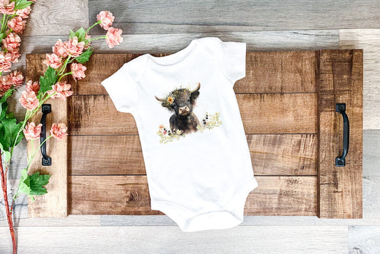 Baby Highland Cow Baby Bodysuit, Highland Cow Baby Creeper, Country Baby, Farming Baby