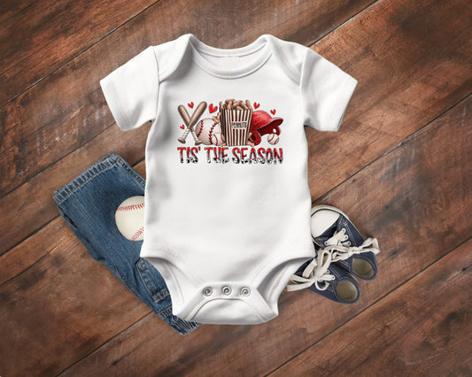Tis The Season Baseball Baby Bodysuit, Baseball Baby Creeper, Baseball Baby