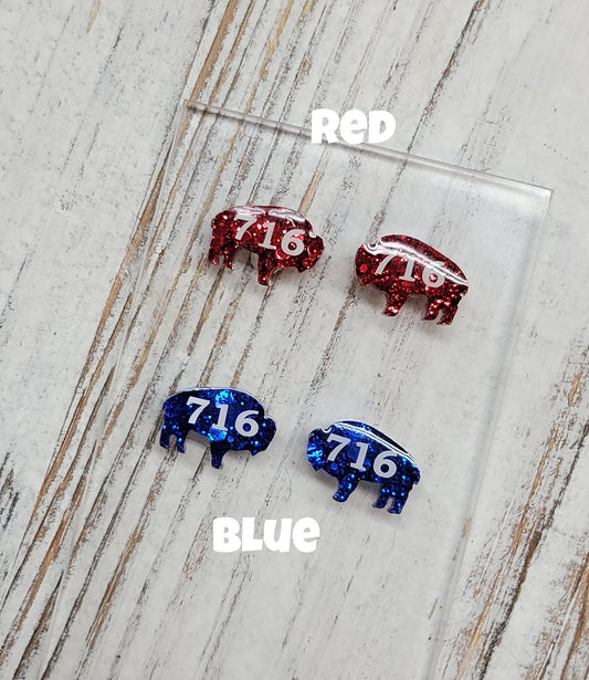 Chunky Glitter 716 Buffalo Stud Earrings, 716 Buffalo Earrings, 716 Buffalo Post Earrings, Fun Earrings, Buffalo Jewelry