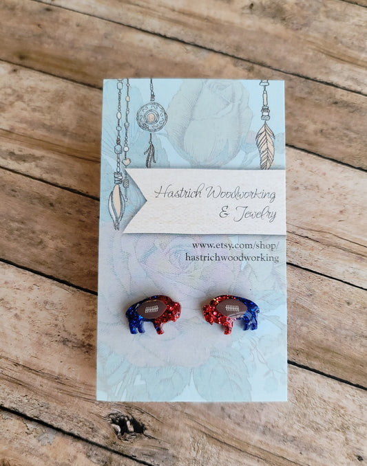 Football Chunky Glitter Buffalo Stud Earrings, Football Buffalo Earrings, Football Buffalo Post Earrings, Fun Earrings, Buffalo Jewelry