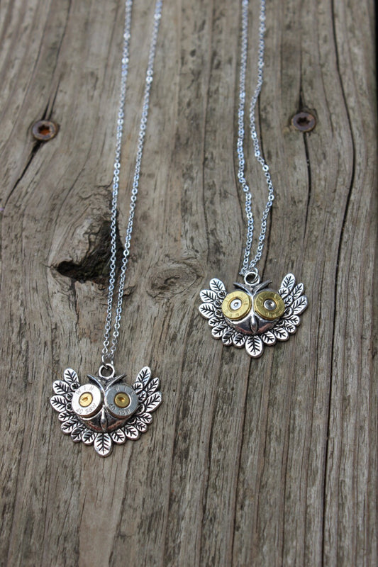 Handmade Owl Bullet Necklace in Silver OR Antique Brass, Owl Necklace, Bullet Jewelry, Owl Jewelry