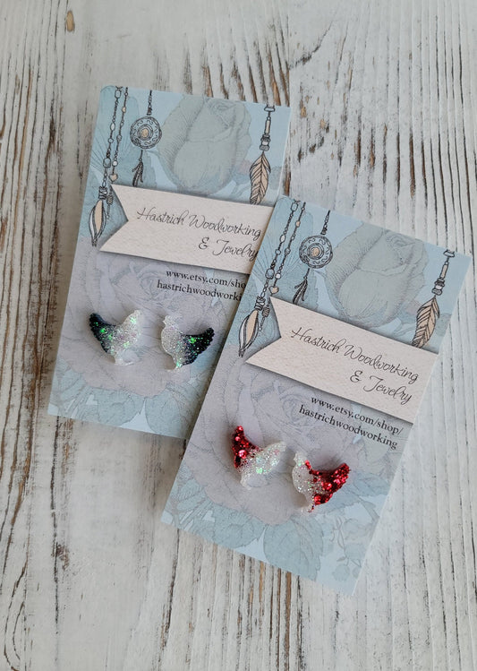 Christmas Glitter Chicken Stud Earrings, Christmas Chicken Earrings, Christmas Chicken Post Earrings, Gifts for Her, Glitter Earrings