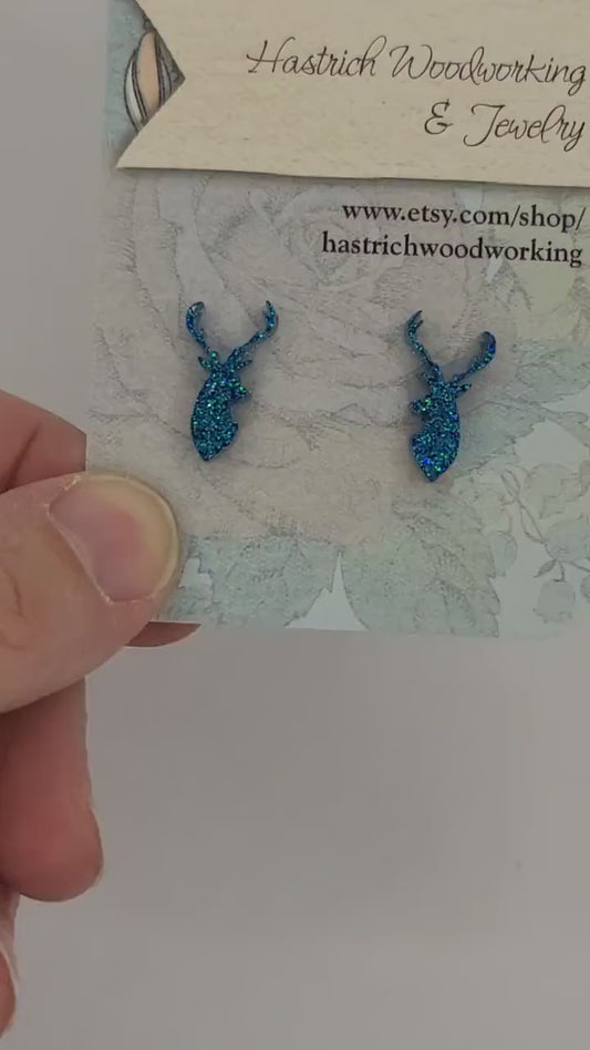 Chunky Glitter Buck Stud Earrings, Buck Earrings, Fun Earrings, Buck Jewelry, Deer Earrings