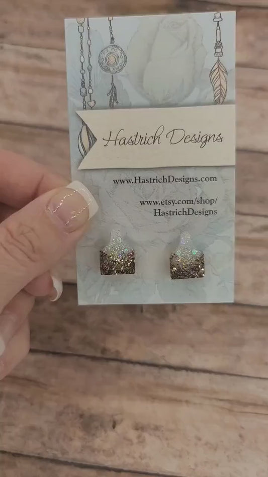 Chunky Ombre Glitter Cow Tag Stud Earrings, Cow Tag Earrings, Cattle Tag Stud Earrings Cattle Tag Earrings, Fun Earrings, Cattle Tag Jewelry