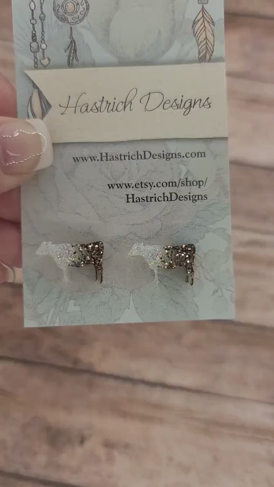 Chunky Glitter Cow Stud Earrings, Cow Earrings, Heifer Stud Earrings Heifer Earrings, Fun Earrings, Cow Jewelry