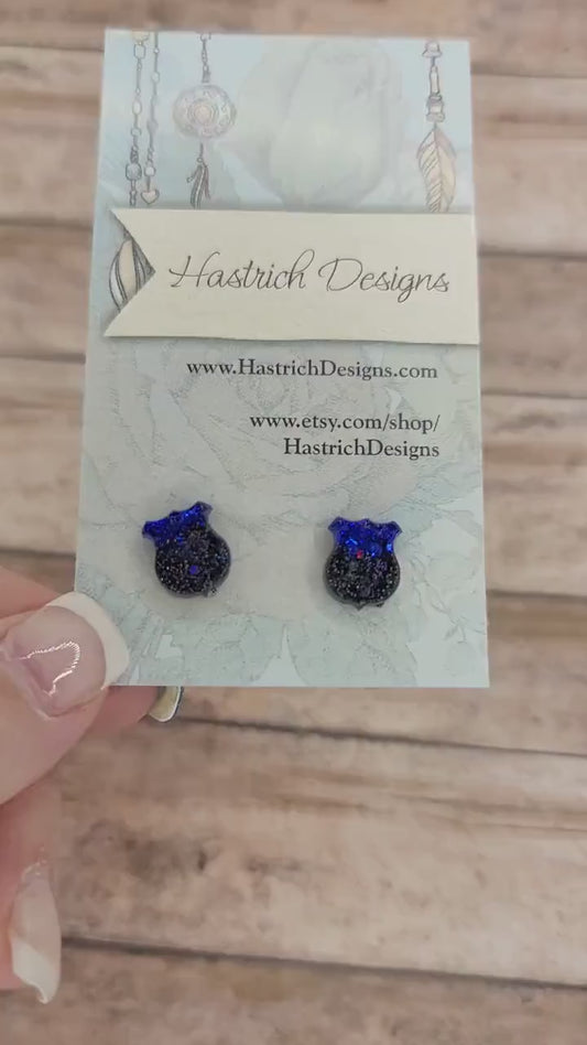 Custom Glitter Blue Line Stud Earrings, Blue Line Earrings, Police Earrings, Blue Line Jewelry