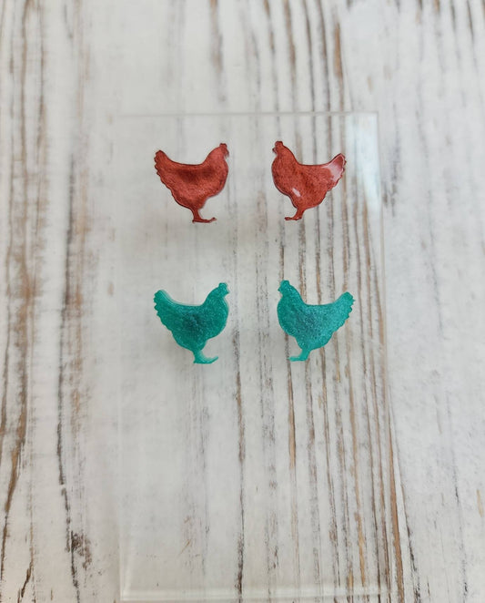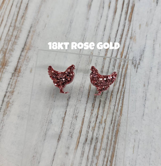 Chicken Stud Earrings, Chicken Earrings, Chicken Post Earrings, Gifts for Her, Glitter Earrings