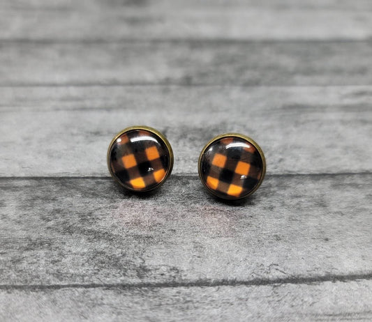 Plaid Stud Earrings, Plaid Earrings, Orange Buffalo Plaid Earrings, Fall Plaid Earrings, Fall Plaid, Fall Earrings