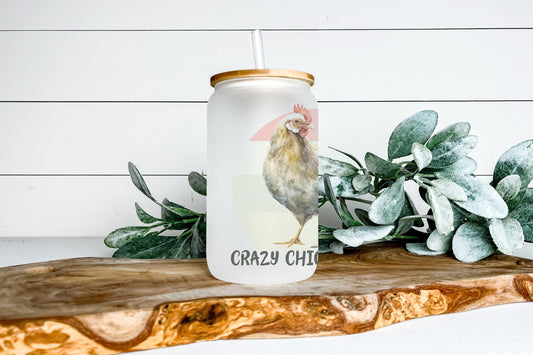 Crazy Chicken Lady Cup Iced Coffee Cup Glass, Beer Can Glass, Chicken Coffee Cup, Glass Cup Coffee Can Beer, Chicken Soda Can Glass