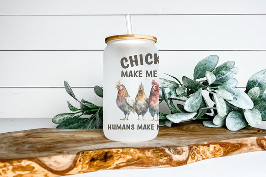Chickens Make Me Happy Humans Make My Head Hurt Cup Iced Coffee Cup Glass, Beer Can Glass, Chickens Coffee Coffee Cup
