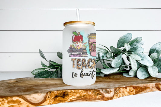 Teaching is Heart Work Teacher Cup Iced Coffee Cup Glass, Beer Can Glass, Teacher Iced Coffee Cup, Glass Cup Coffee Can Beer