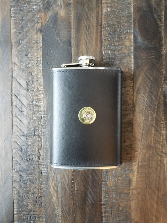 Black Leather Bullet Flask, 12GA, Winchester Remington Wedding Party Gift Groomsman Gift Set Groomsmen Flask Leather Flask Shotgun Shell
