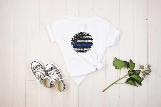 Thin Blue Line Flag Sunflower Youth Shirt Tee, Thin Blue Line Flag Youth Shirt Tee