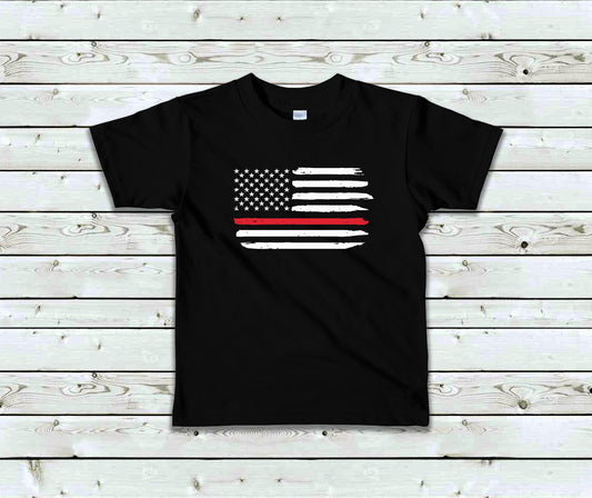 Thin Red Line Toddler Tee Kid's Tee T-Shirt - Firefighters - Military - American Flag - Red Line Flag - First Responders
