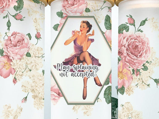 Man-Splaining Not Accepted 25oz Frosted Glass Tumbler, Floral Tumbler, Funny Tumbler Sarcastic Tumbler