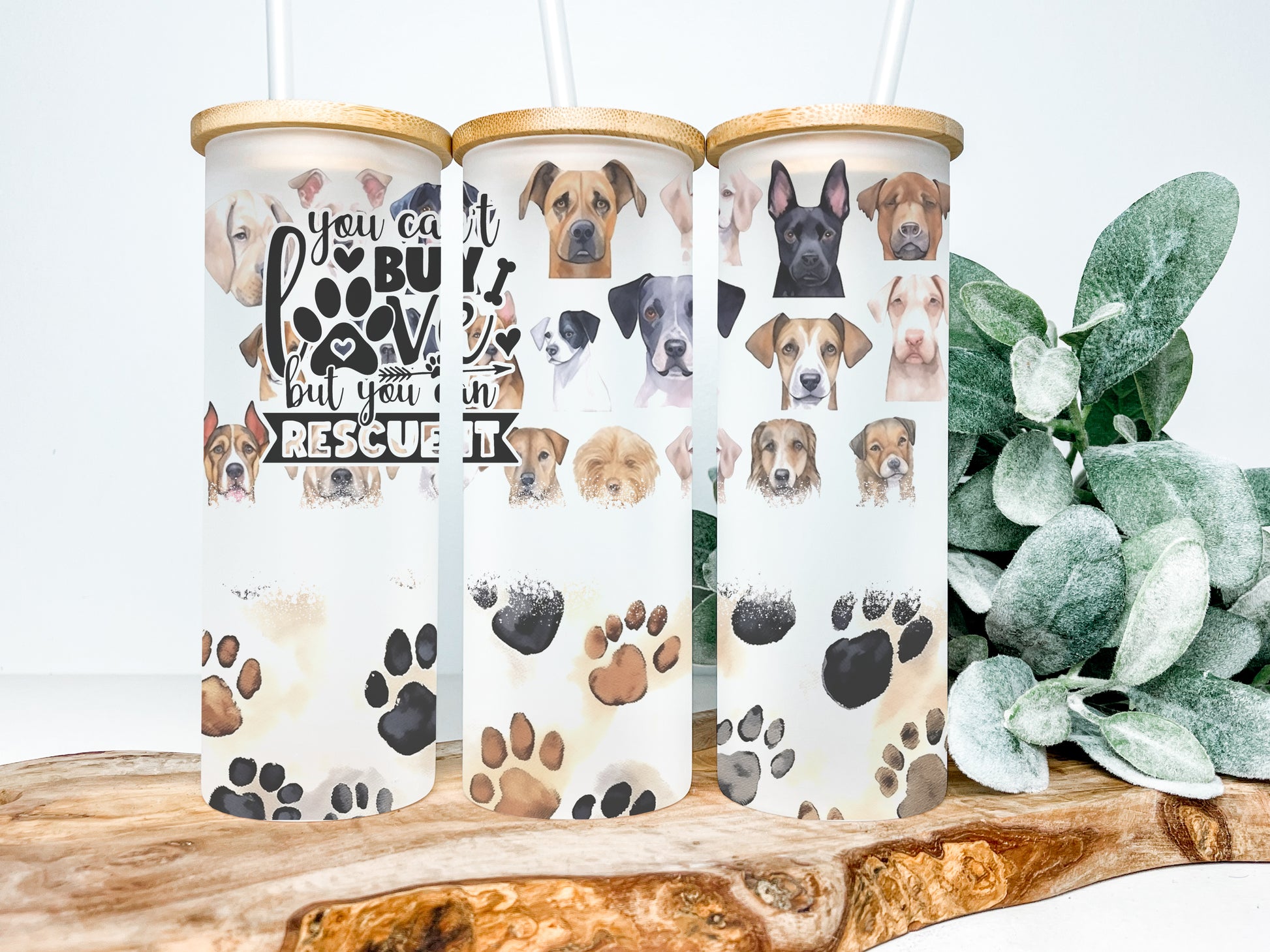 You Can't Buy Love But You Can Rescue It 25oz Frosted Glass Tumbler, Dog Tumbler, Rescue Tumbler