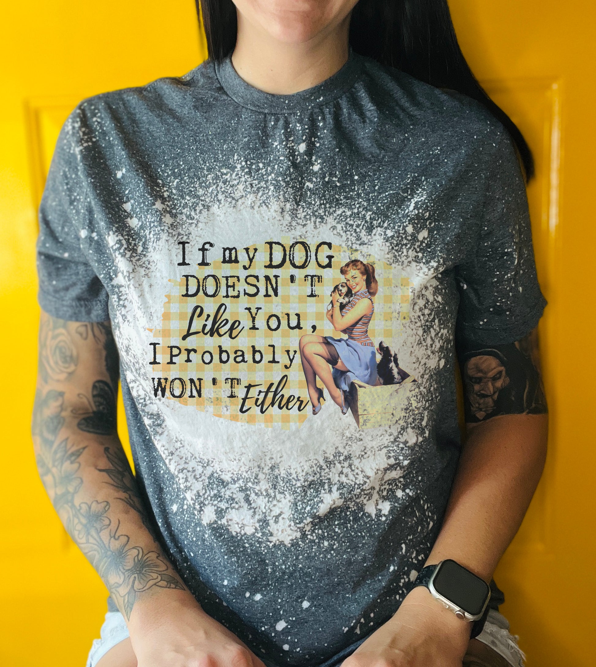 If My Dog Doesn't Like You Tee Shirt, Retro Housewife Bleached Tee
