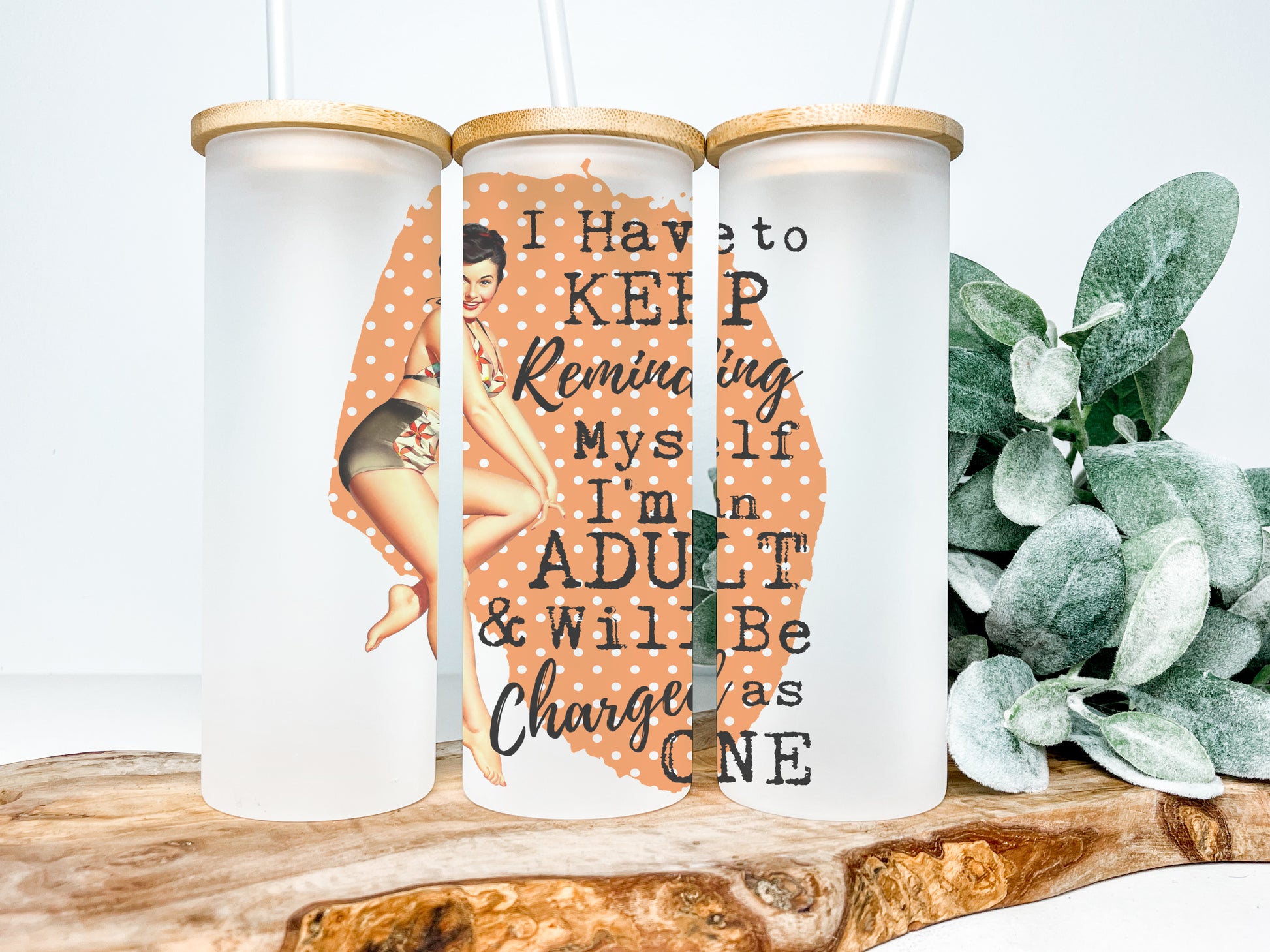 I Have to Keep Reminding Myself I'm an Adult 25oz Frosted Glass Tumbler, Funny Retro Housewives Tumbler