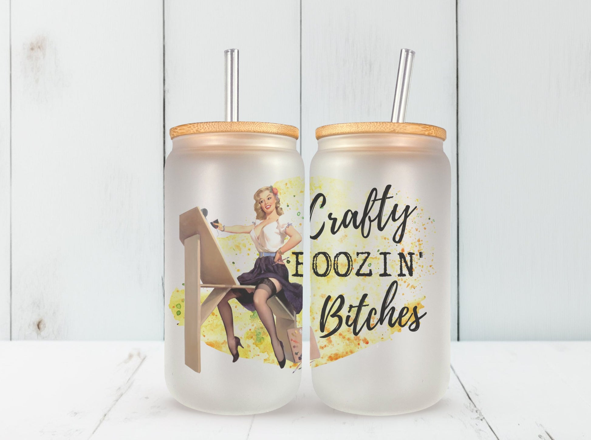 Craft Boozin' Bitches Glass Can, Funny Retro Housewives Iced Coffee Cup