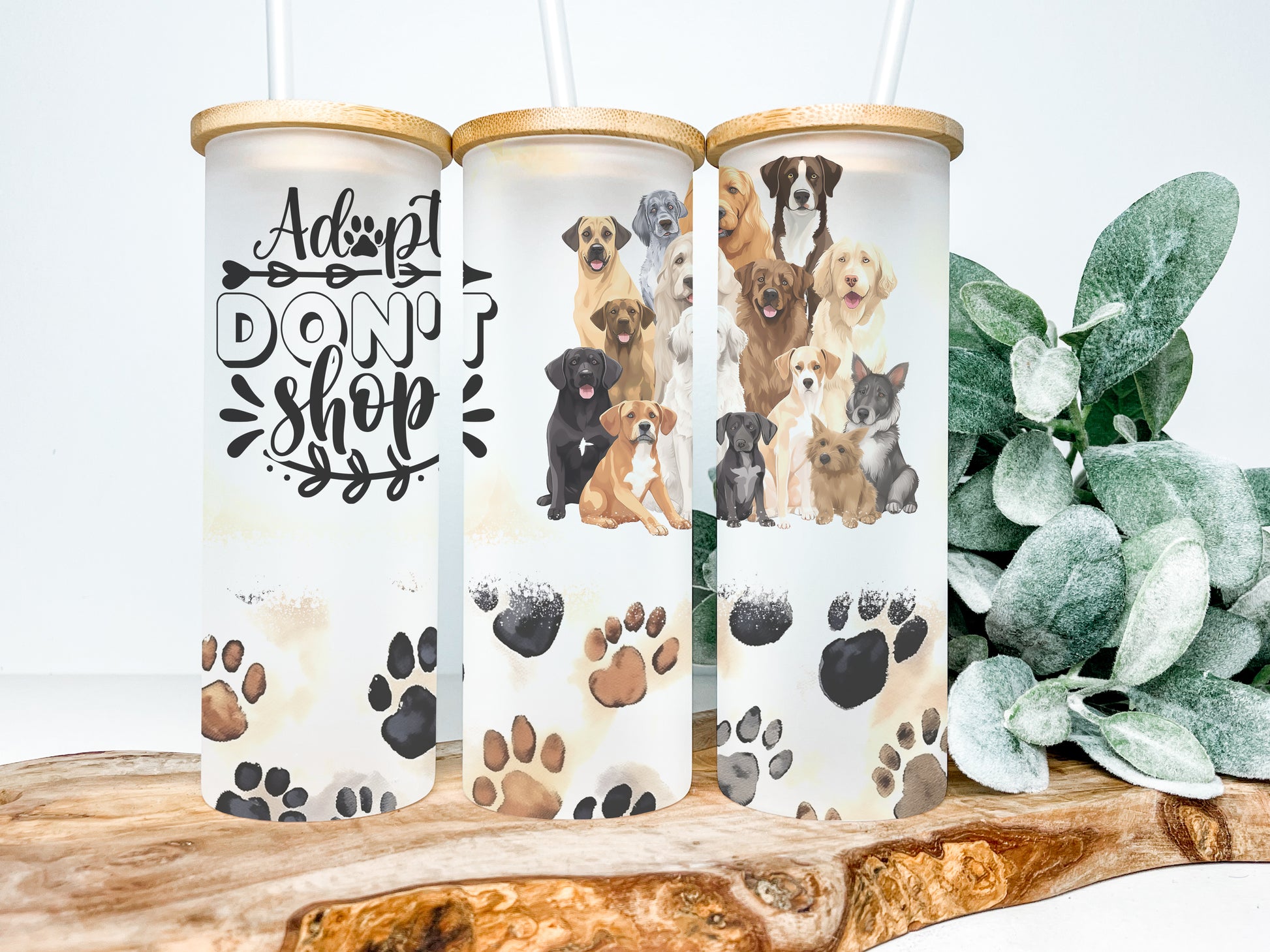 Adopt Don't Shop 25oz Frosted Glass Tumbler, Dog Tumbler, Rescue Tumbler