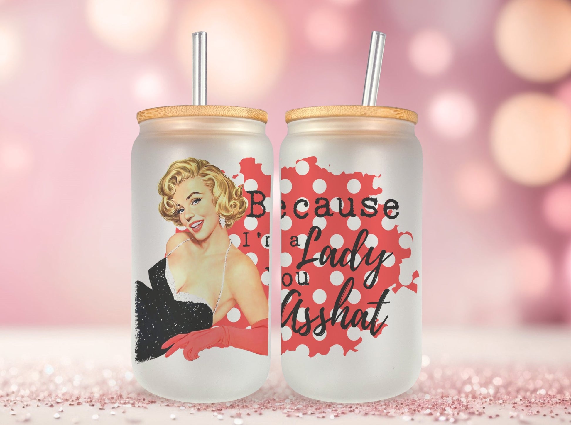 Because I'm a Lady Glass Can, Funny Retro Housewives Iced Coffee Cup