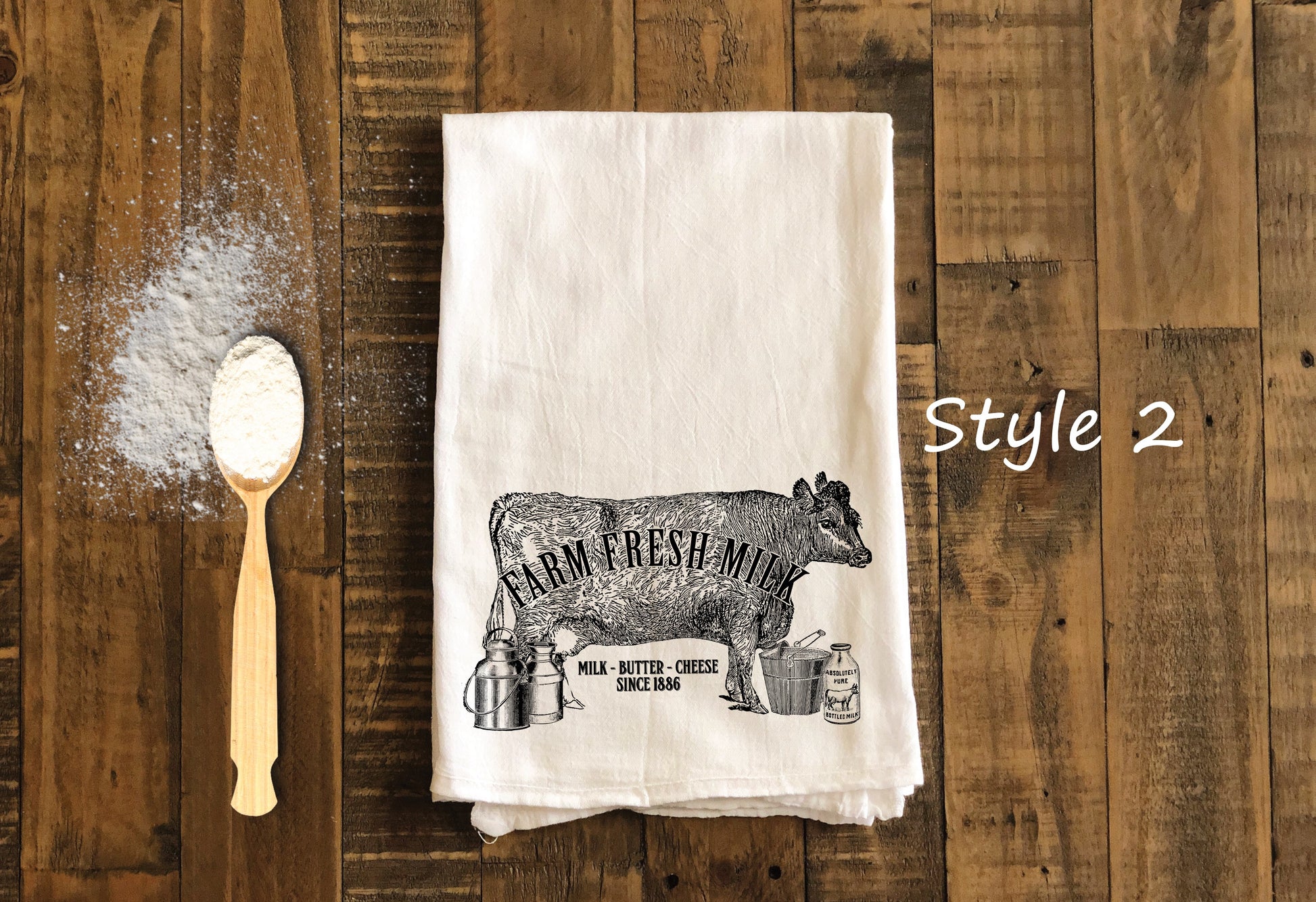 Farm Fresh Milk- Farmhouse Kitchen Tea Towels - Farmhouse Flour Sack Dish Towel - farmhouse Housewarming Gift Kitchen Decor