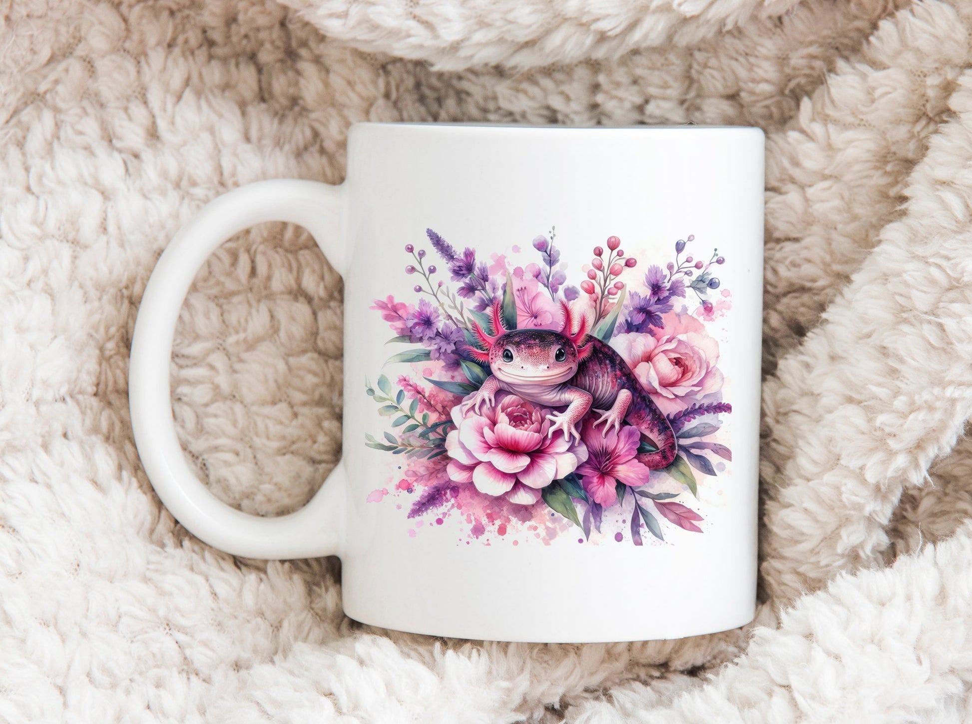 Floral Axolotl Coffee Mug, Axolotl Mug, Salamander Coffee Mug