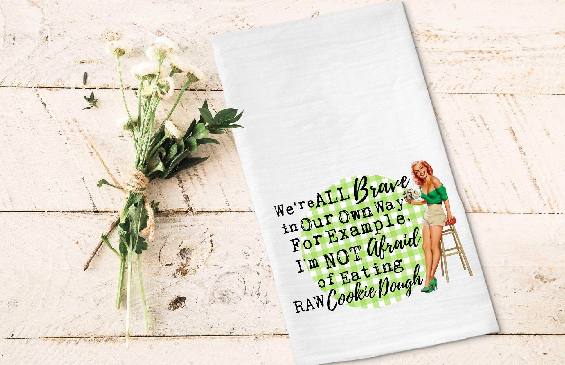 We're All Brave - Funny Kitchen Tea Towels - Humorous Flour Sack Dish Towel - Hilarious Housewarming Gift Kitchen Decor