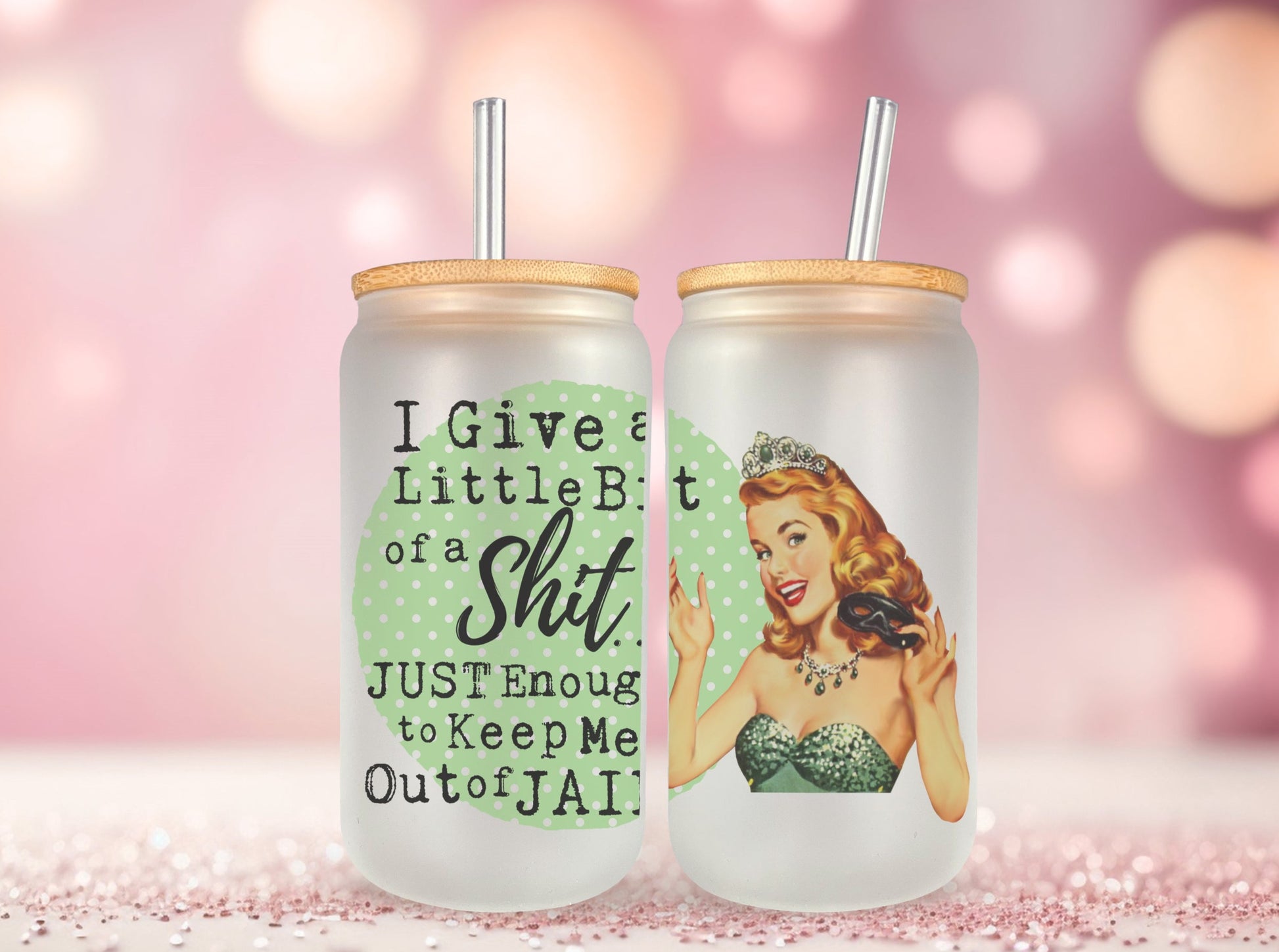 Just Enough To Keep Me Out of Jail Glass Can, Funny Retro Housewives Iced Coffee Cup