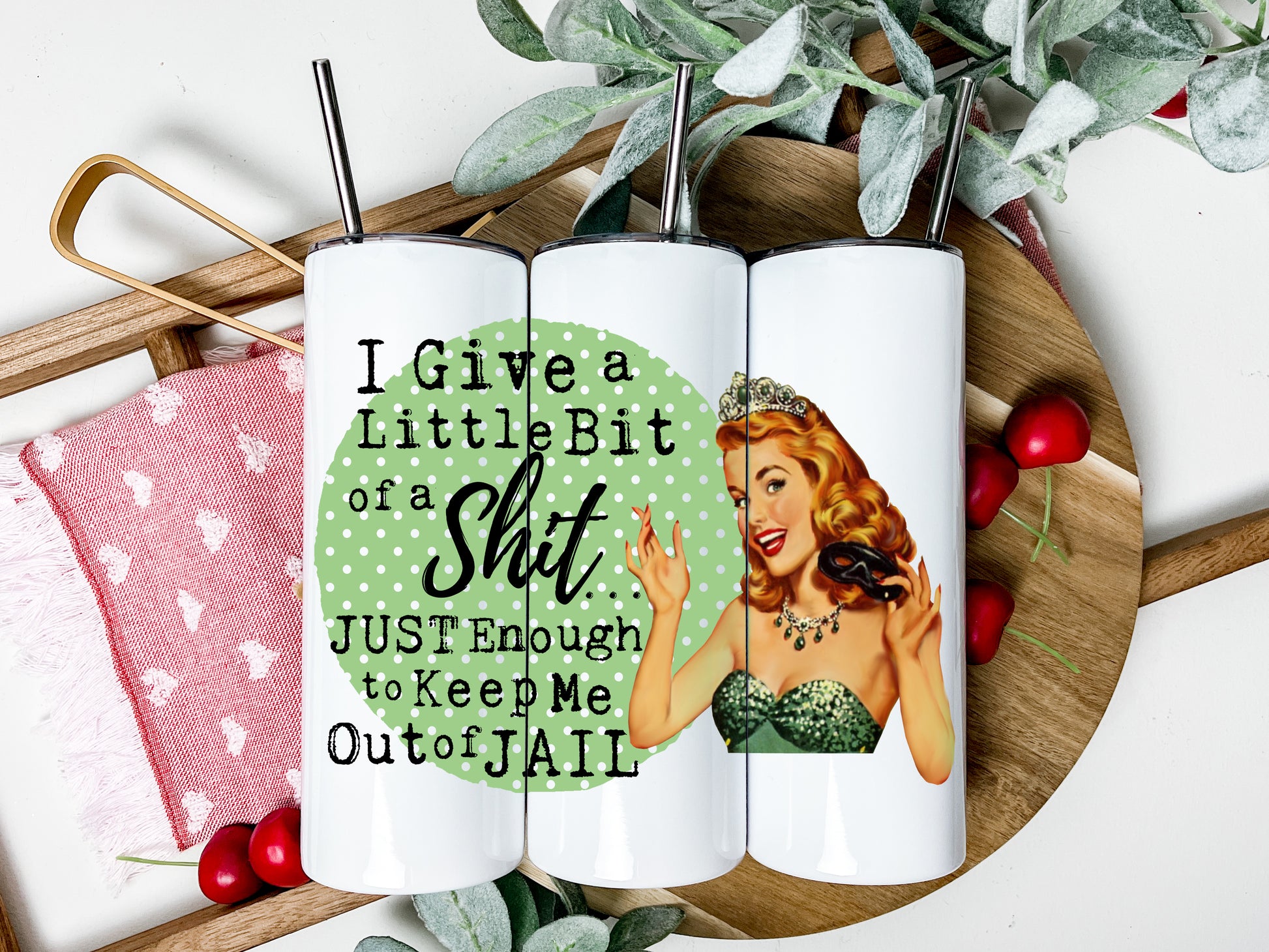 Just Enough to Keep Me Out of Jail Tumbler, Funny Retro Housewives Skinny Tumbler