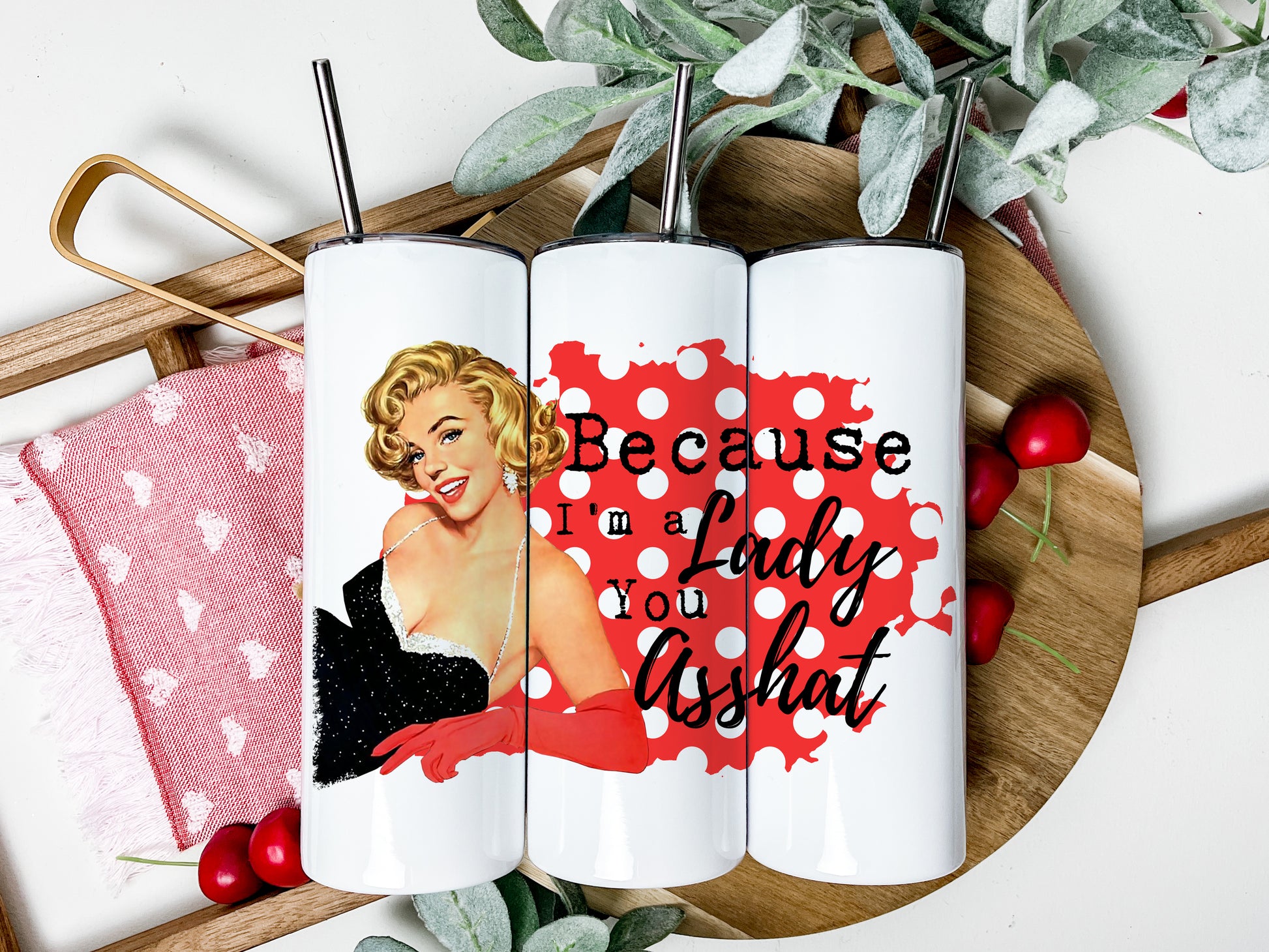 Because I'm a Lady Tumbler, Funny Retro Housewives Skinny Tumbler