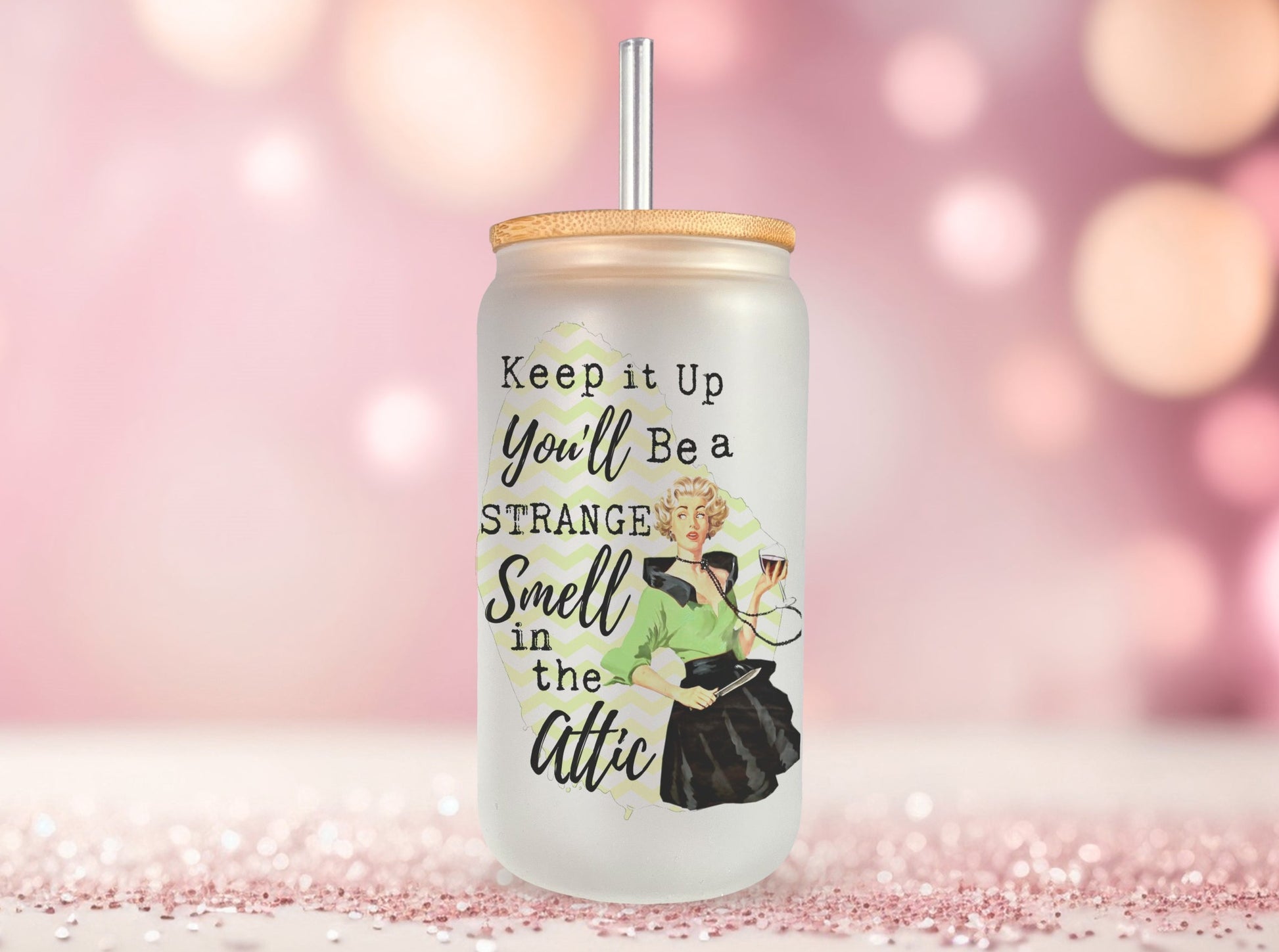 Keep It Up You'll Be a Strange Smell Glass Can, Funny Retro Housewives Iced Coffee Cup