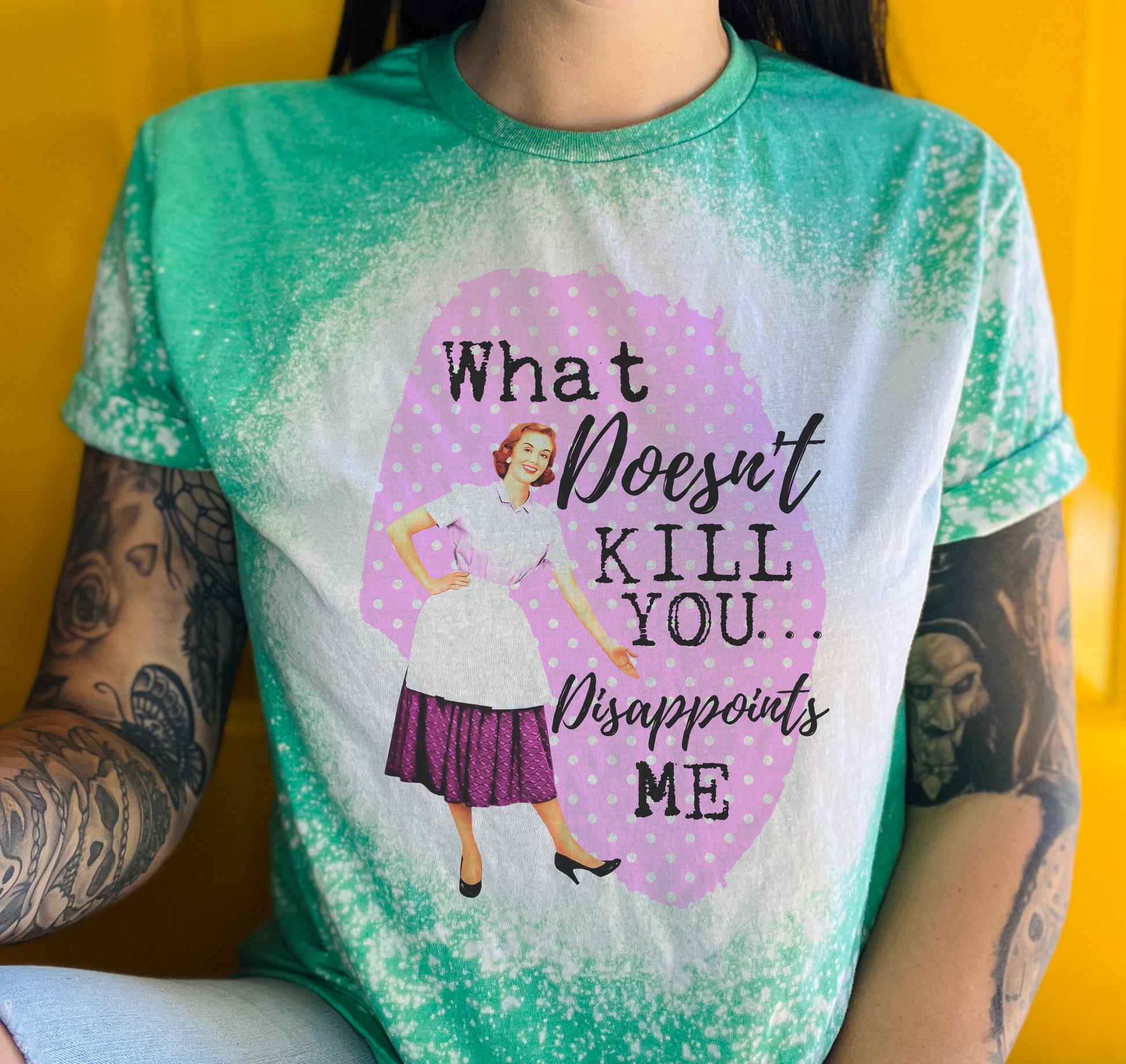 What Doesn't Kill You Tee Shirt, Retro Housewife Bleached Tee
