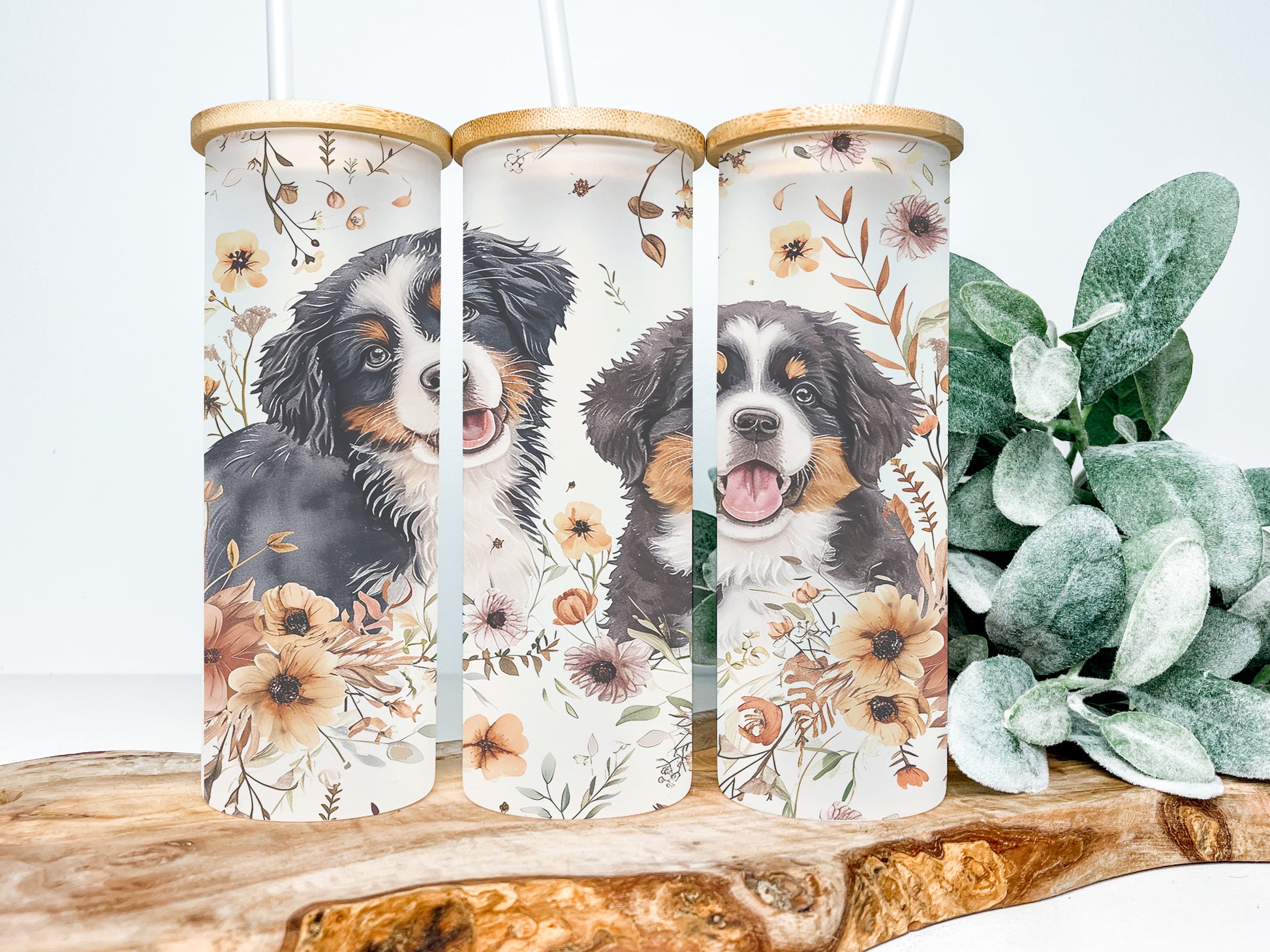 Bernese Mountain Dog 25oz Frosted Glass Tumbler, Dog Tumbler, Rescue Tumbler, Bernese Mountain Dog Tumbler