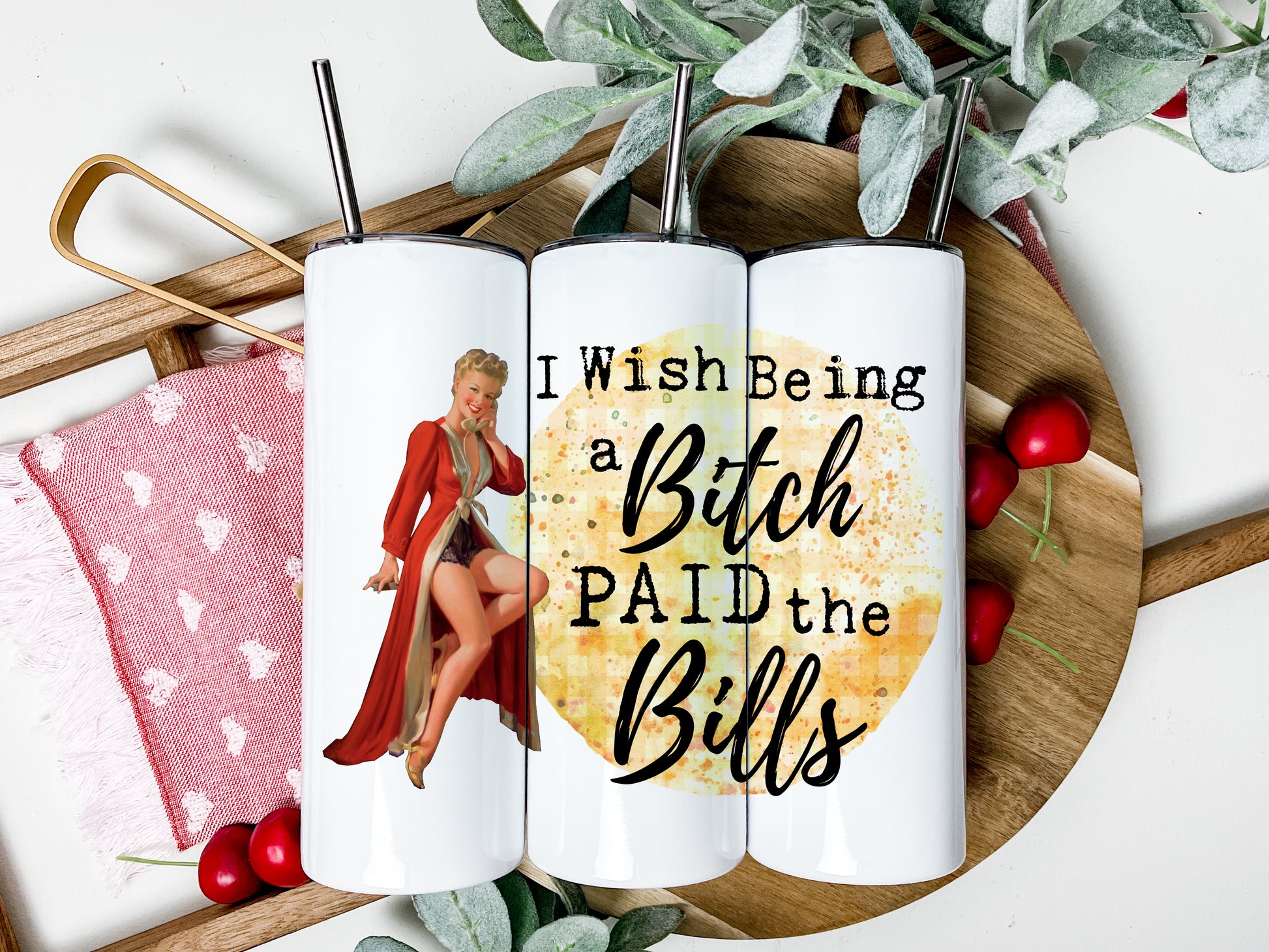 I Wish Being a Bitch Paid the Bills Tumbler, Funny Retro Housewives Skinny Tumbler