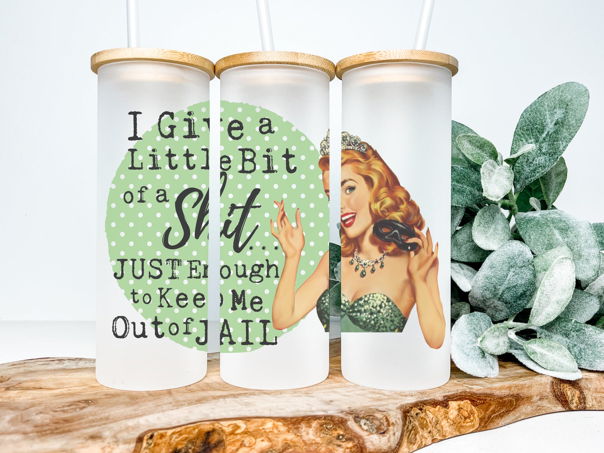 Just Enough to Keep Me Out of Jail 25oz Frosted Glass Tumbler, Funny Retro Housewives Tumbler