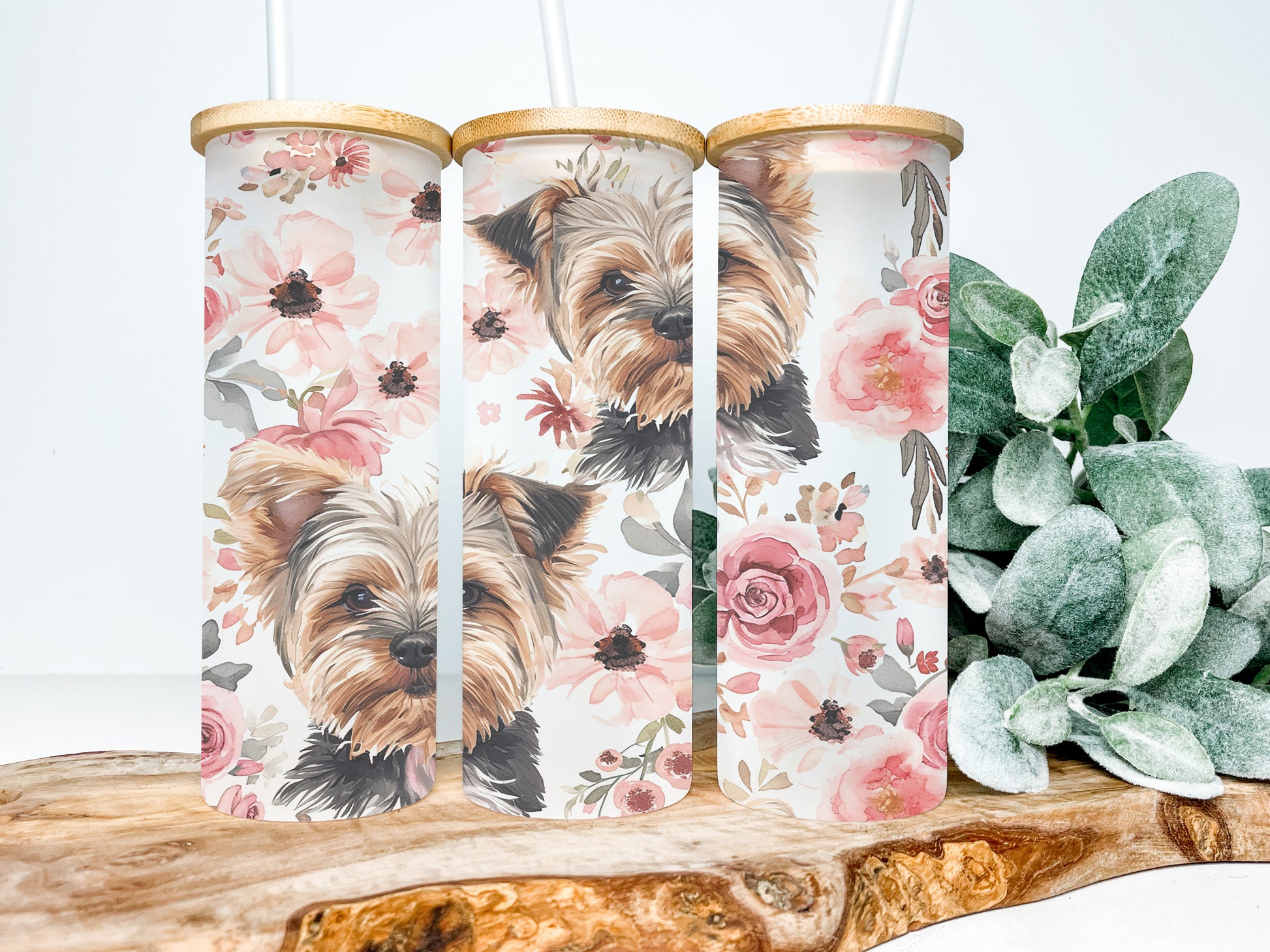 Yorkie Dog 25oz Frosted Glass Tumbler, Dog Tumbler, Rescue Tumbler, Yorkie Dog Tumbler