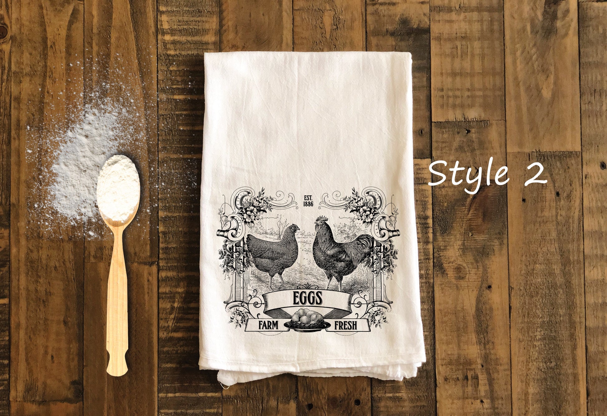 Farm Fresh Eggs - Farmhouse Kitchen Tea Towels - Farmhouse Flour Sack Dish Towel - farmhouse Housewarming Gift Kitchen Decor