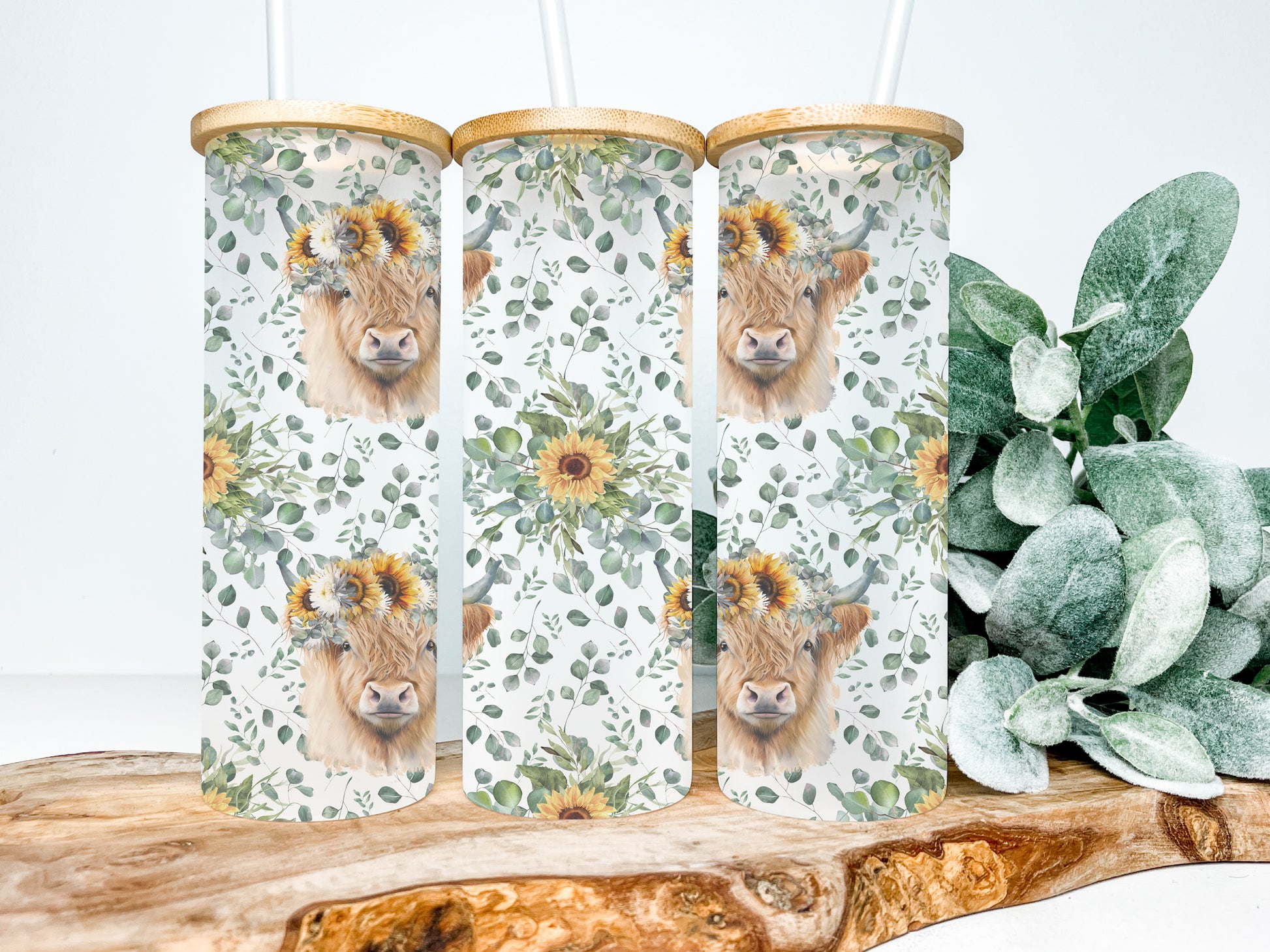 Highland Cow 25oz Frosted Glass Tumbler, Highland Cow Tumbler