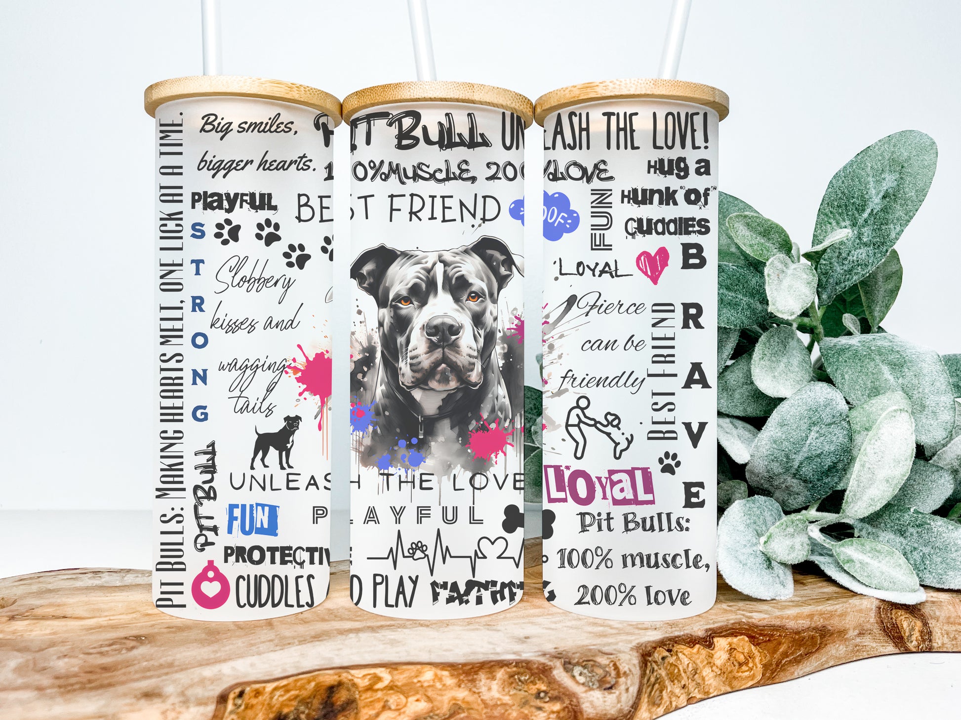Pit Bull 25oz Frosted Glass Tumbler, Dog Tumbler, Rescue Tumbler, Pit Bull Tumbler