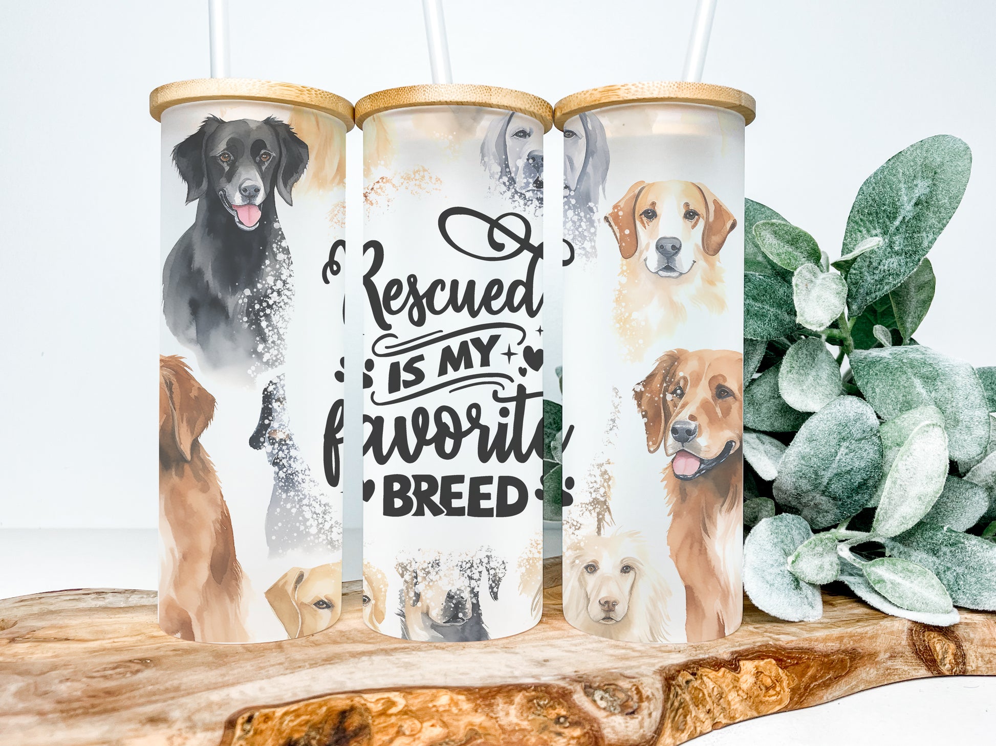 Rescued Is My Favorite Breed 25oz Frosted Glass Tumbler, Dog Tumbler, Rescue Tumbler