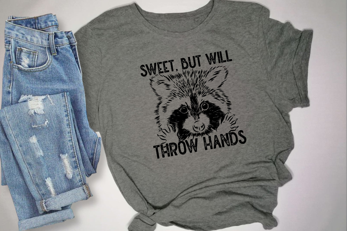 Sweet But Will Throw Hands Shirt Tee, Sarcastic Tee Shirt, Funny Shirt